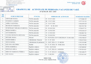 GRAFICUL DE ACTIVITATE PE PERIOADA VACANTEI DE VARĂ 9 AN ȘCOLAR 2023 /2024